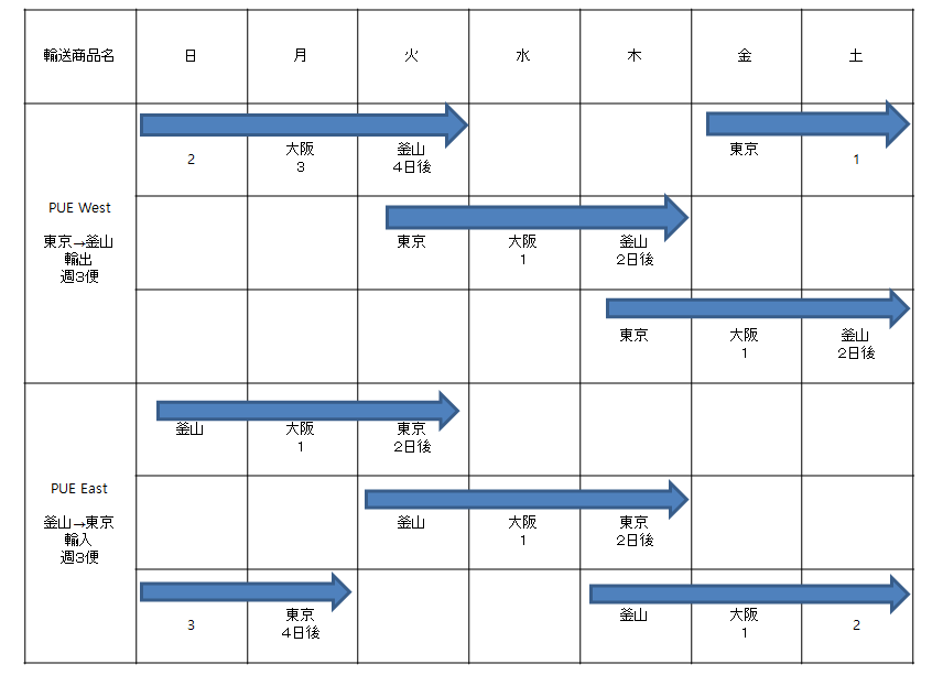 自社のフェリーと鉄道運送を結合し、航空運送を代替する超特急輸送モード(PUE)を開発航空物流対比運送費を革新的に節減