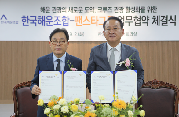 팬스타그룹 – 한국해운조합, 공동발전 업무협약 체결 -해운조합 및 2,200여 조합원 해운사 임직원에 여객상품 할인혜택 제공- 팬스타그룹과 한국해운조합이 2일 양사의 공동발전을 위한 업무협약을 체결했다. 서울 강서구 등촌동 한국해운조합 건물에서 열린 협약식에는 김현겸 팬스타그룹 회장과 이채익 해운조합 이사장을 비롯해 양측 관계 임원 등이
