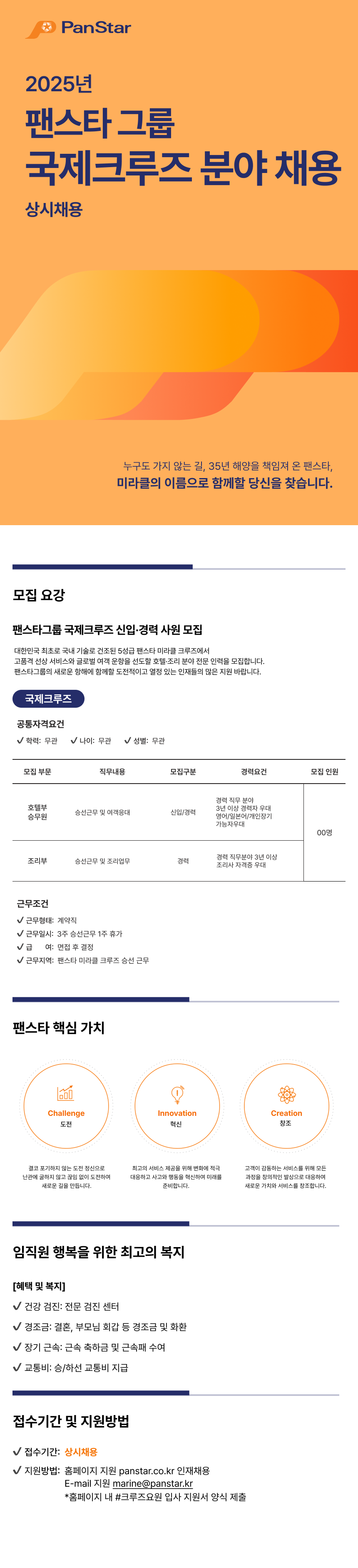국제크루즈 호텔부, 조리부 채용